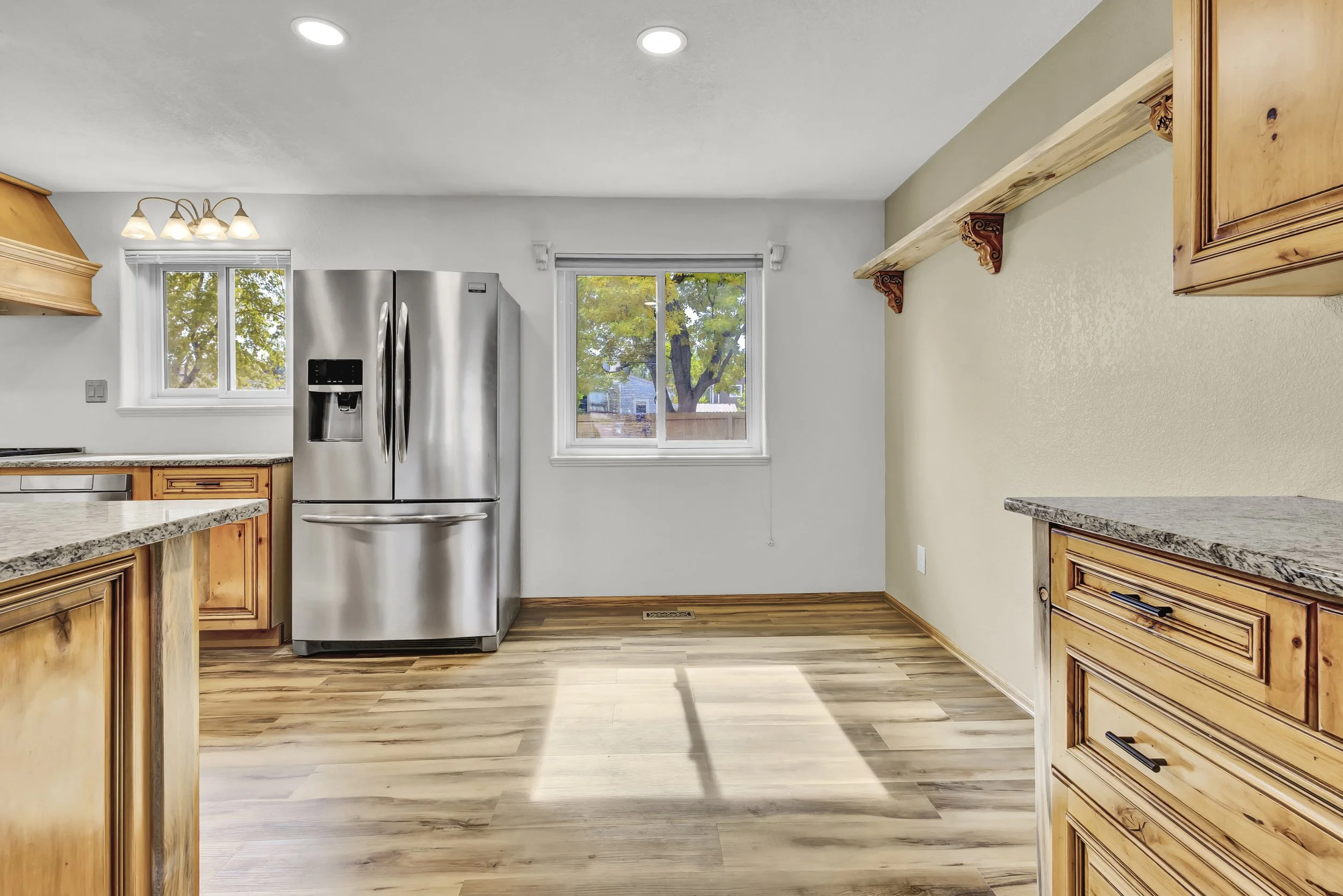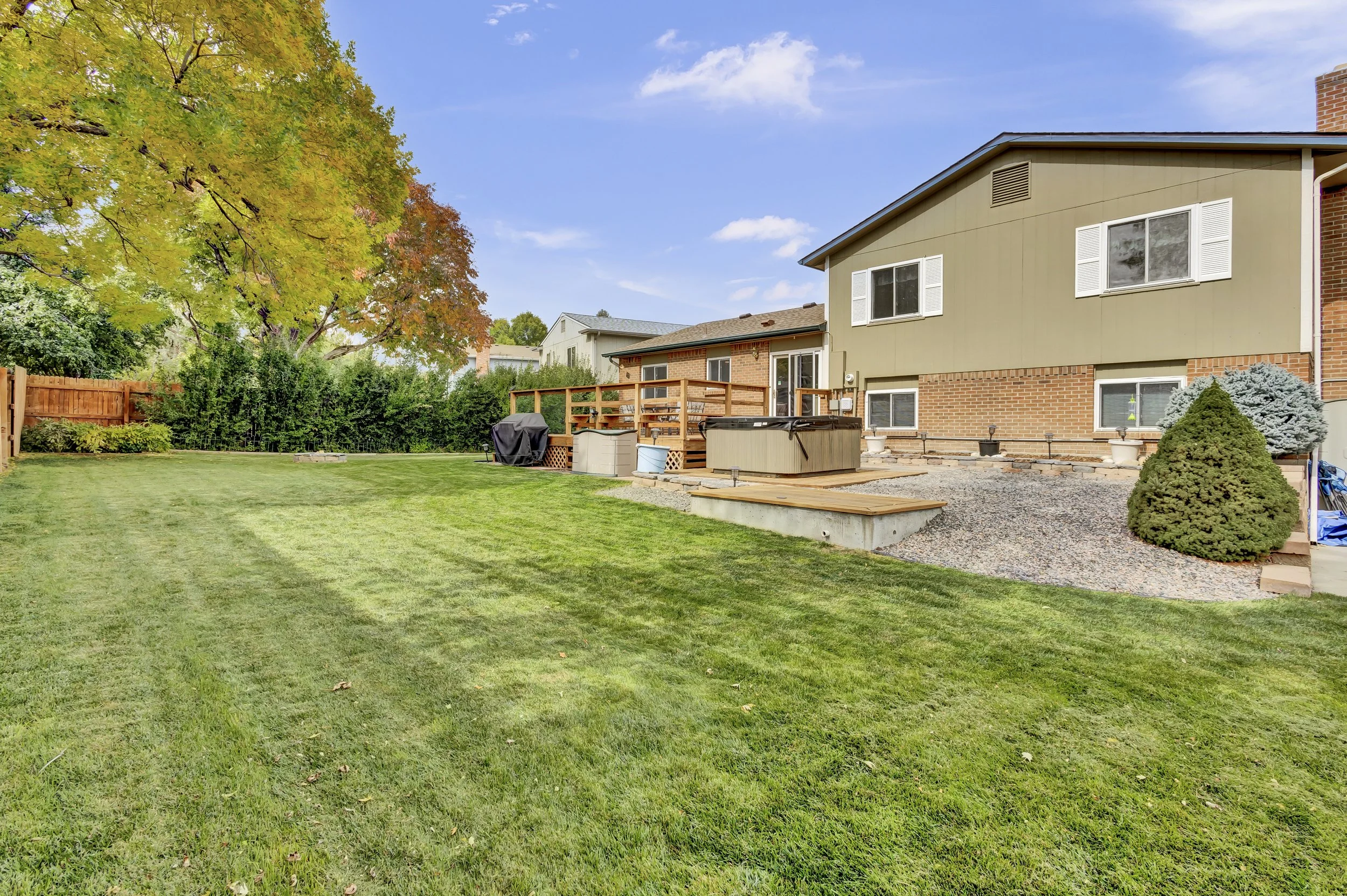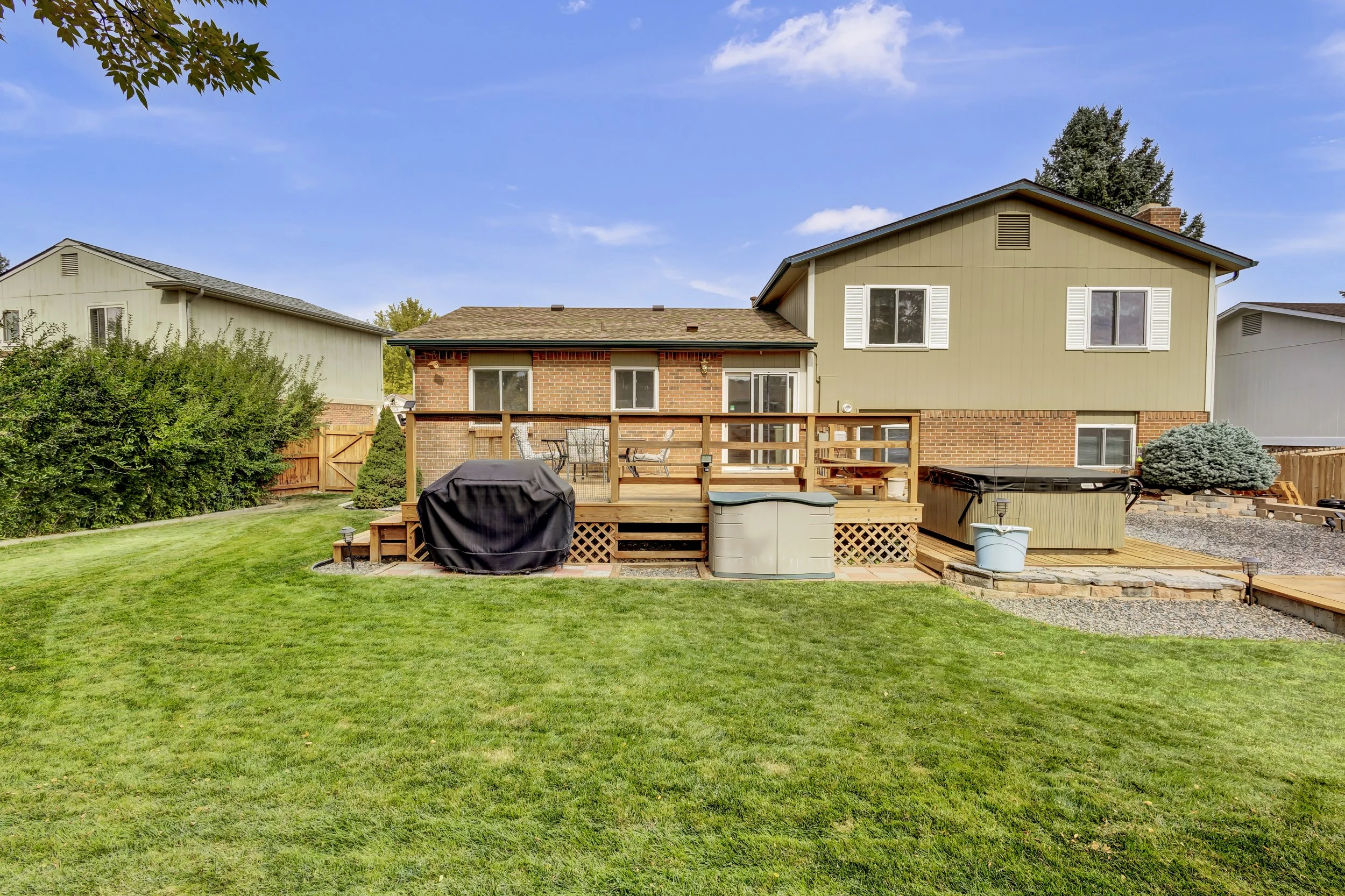 Discover this beautifully updated home in Littleton’s sought-after Meadows community. Featuring 3 bedrooms, 3 bathrooms, and a spacious 2-car garage, this home offers modern convenience with a touch of rustic charm. The updated kitchen boasts custom granite countertops, striking beetle kill pine accents, a large gas stove, and a built-in microwave with a fully functional warming drawer. The open family room, complete with a cozy electric fireplace, leads to a fenced backyard featuring a large deck, built-in fire pit, and a nearly-new hot tub—perfect for outdoor relaxation. With smart home features like a Nest thermostat and SimpliSafe security system, updated easy-clean windows, and a convenient main-floor laundry, this home blends comfort and technology. The unfinished basement provides ample storage or the opportunity to create additional living space. Larger 3 ton air conditioning unit with increased plenum ducts in basement helping cool the home down quicker and more efficiently. Exterior of the home was painted in August of 2023 along with the roof being replaced in October of 2023 after the many hail storms in the spring of 2023. Ideally located minutes from C-470 and Chatfield Reservoir, Red Rocks, outdoor adventures are always close by.